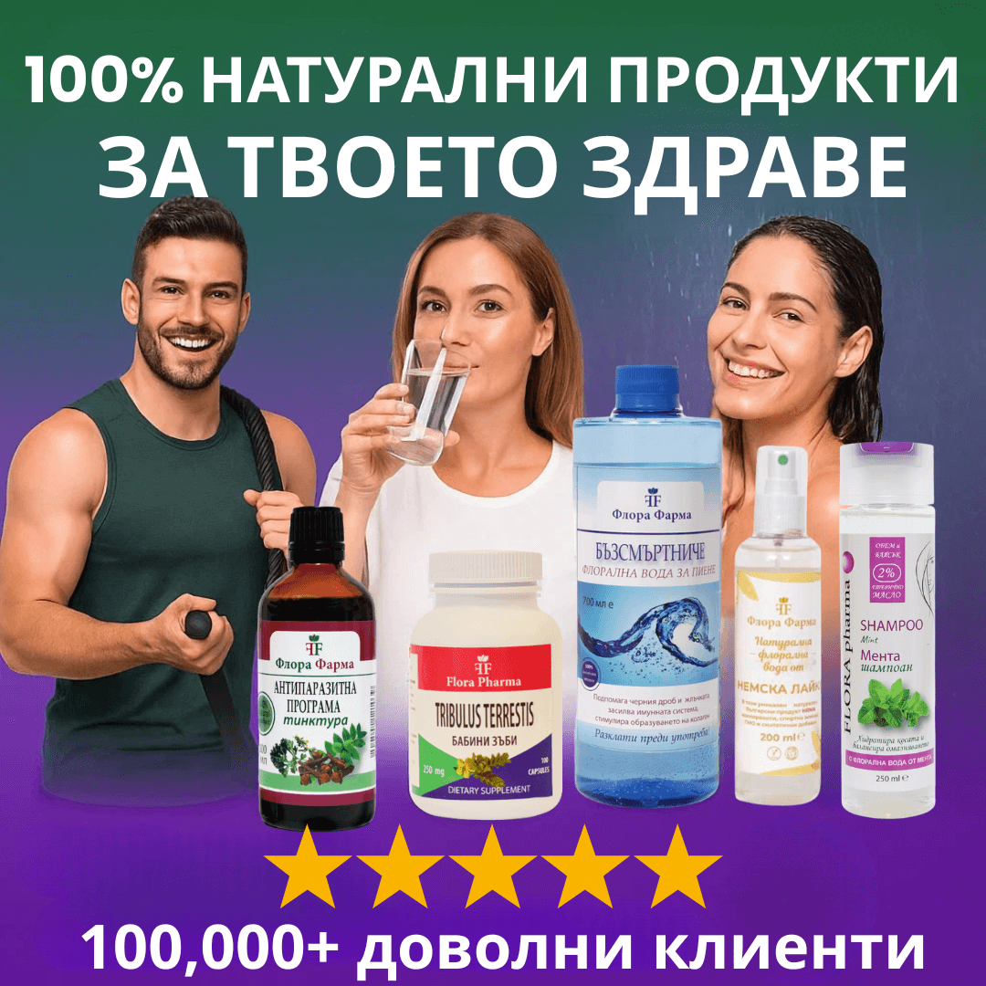 Флора Фарма са сертифициран български производител на 100% натурални тинктури, хранителни добавки, флорални води, шампоани и чайове - без ГМО, без консерванти, без синтетични добавки, клинично тествани формули, за хора които искат реални резултати.
