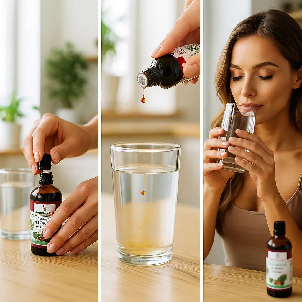 Приемът е лесен: сутрин и вечер по няколко капки, разтворени във вода – не изисква никакво специално време или усилие и отнема по-малко от 2 минути на ден!