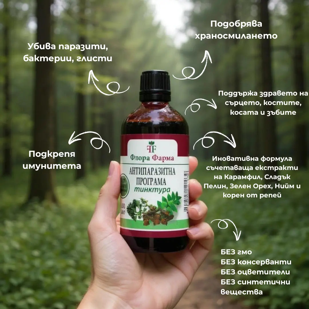 Антипаразитна програма – тинктура 100 мл - убива паразити, бактерии и гъбички