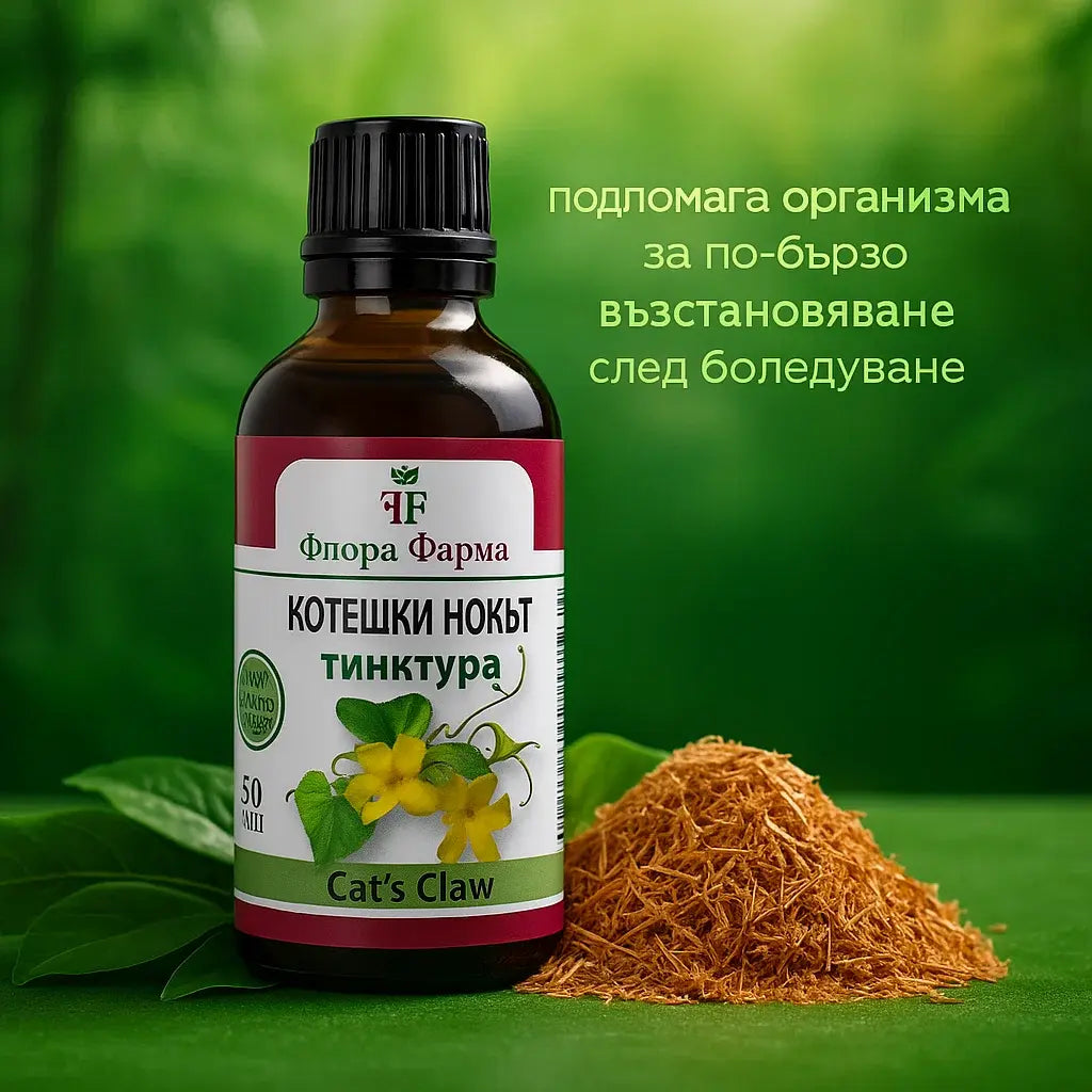 Котешкият нокът е мощна антивирусна билка, която естествено подпомага имунната система и спомага за защита от инфекции. Той има силни противовъзпалителни и антиоксидантни свойства, които подпомагат организма при борба с вируси и настинки. Приемът му под формата на тинктура подпомага по-бързото възстановяване и повишава устойчивостта на тялото в периоди на повишена заболеваемост.