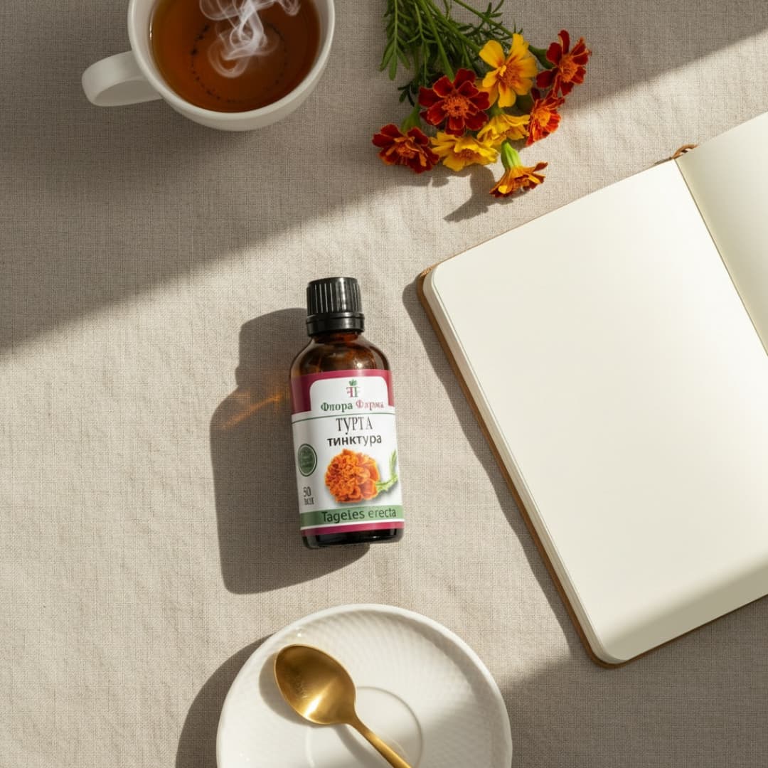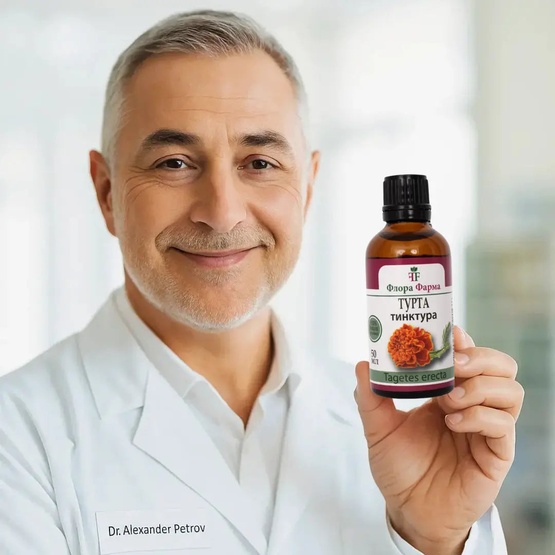Турта (Tagetes erecta) е древна билка, използвана в народната медицина от векове. Съвременните изследвания потвърждават, че активните ѝ съставки – флавоноиди, сапонини и етерични масла – подпомагат възстановяването на естествения хормонален баланс и нормалното функциониране на репродуктивната система при жената. Действа по напълно безопасен начин, без странични ефекти, и осигурява дълготраен резултат чрез естествено регулиране на процесите в организма.