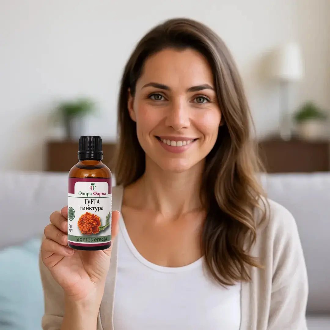 Тинктурата от Турта подпомага естественото изчистване на миоми, кисти, възли и мастопатия, както и при нередовен цикъл, маточни възпаления, полипи, бяло течение и стерилитет. Има силно антивъзпалително и противопаразитно действие.